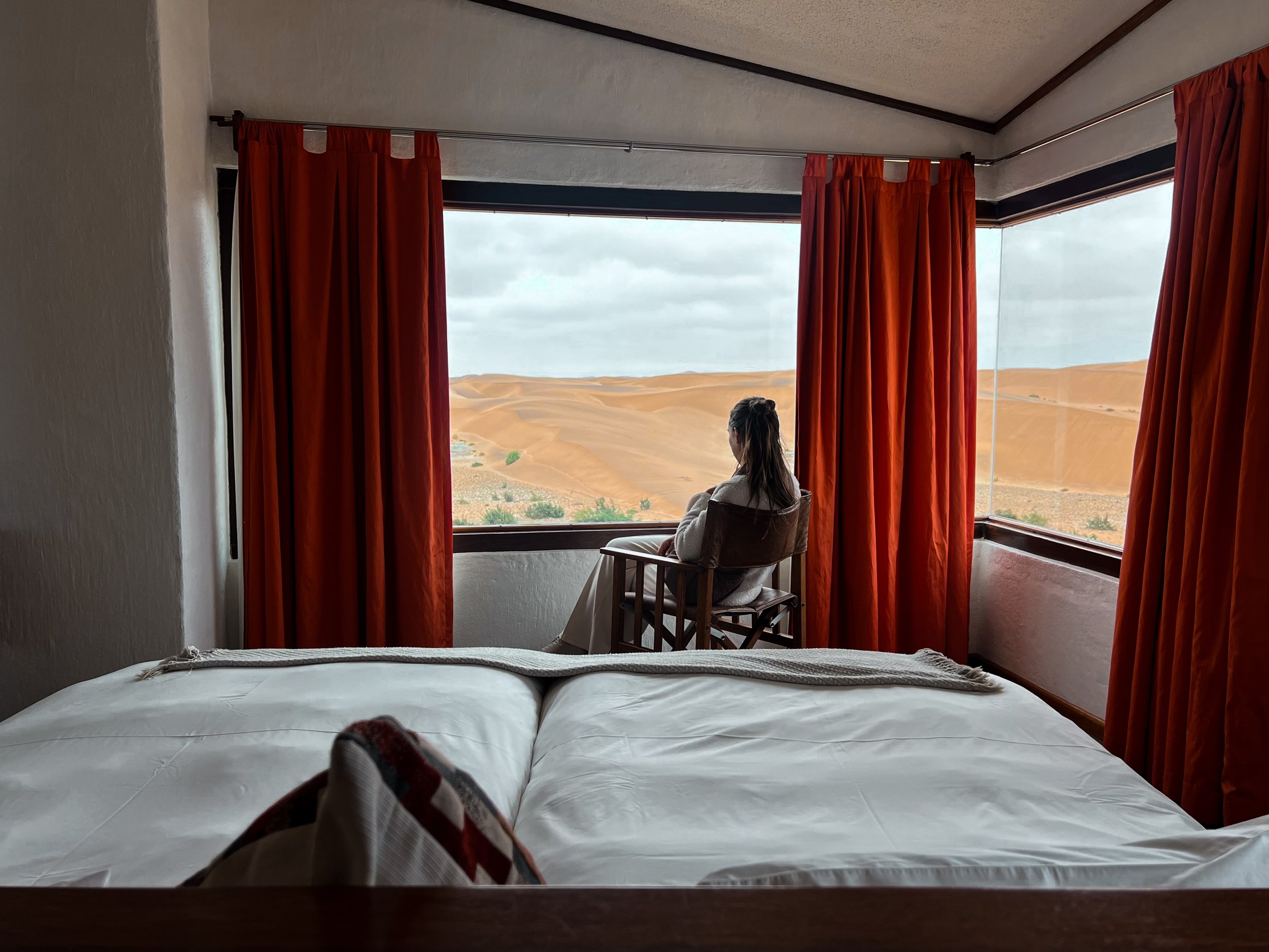Daarna begeleiden we je reis verder tot in Swakopmund. Terwijl de Atlantische zeewind zich vermengt met de warme woestijnlucht, voel je al de unieke sfeer van deze plek. Hier verblijf je in een lodge met uitzicht op de duinen – een plek waar de stilte bijna tastbaar wordt.